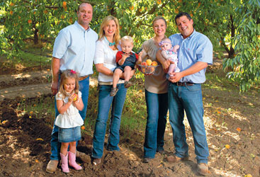 Anthony and Melissa Laney, with daughter Sofia and son Jack, and Candice and Justin Micheli, with daughter Olivia, continue the family farming legacy that dates back to the 1920s.