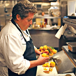 Chef Angelo Micheli uses cling peaches—both fresh and canned—from his family's farm.