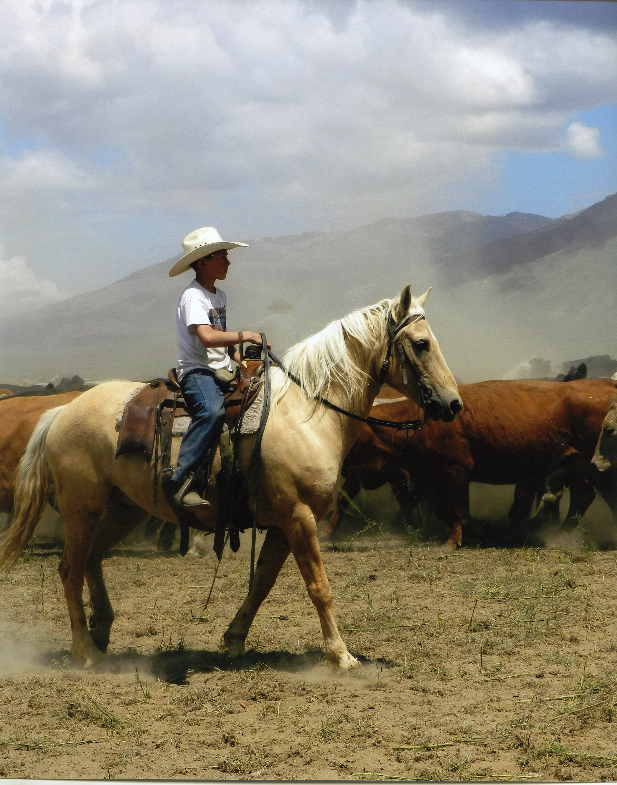 The Johnson family is always ready to document life on a working cattle ranch. "The boys take a camera on their saddle and share it back and forth," said mom Janet Turner Johnson. Layton nabbed this image of older brother Lane and two of the family's border collie puppies, which are bred and trained to help gather the Johnsons' herd of Charolais, Hereford and Angus cattle. The family ranches in Northern California and Nevada.