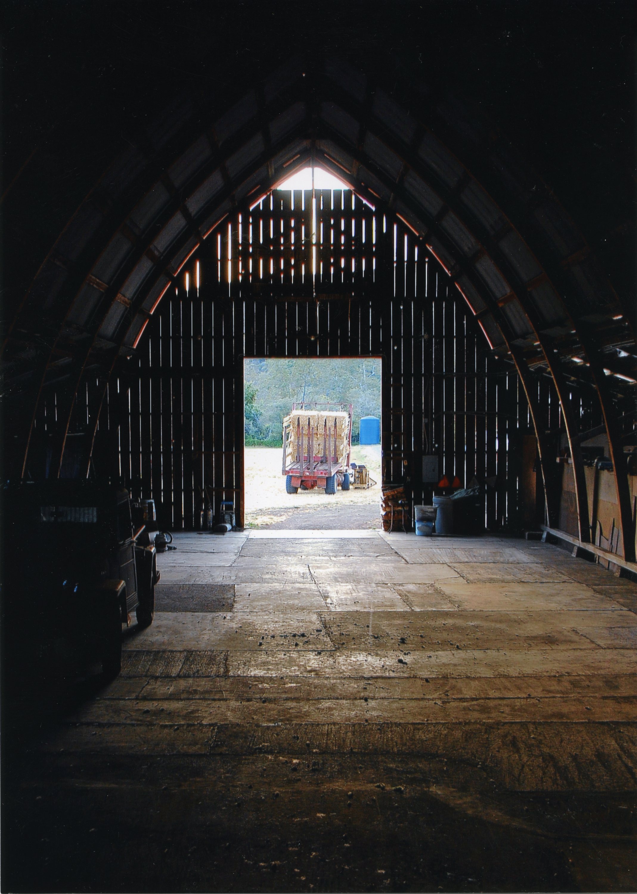 Jon and Lindy Pedotti were cleaning out their barn in preparation for their daughter's wedding celebration when their friend Misty Tartaglia, a full-time registered nurse and part-time shutterbug, caught sight of hay harvesting equipment through the barn door. "I thought it was so neat how the sun was shining through the slats in the walls," she said. The barn, now in use on San Simeon Creek Ranch, was built in 1913.