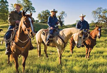 Once covered by the ocean floor, the rich land of the Santa Margarita Ranch was used by Franciscan missionaries in the 1700s and 1800s to raise crops and cattle. Today it is home to a cattle ranch and winery run in part by Doug Filipponi (left), Amanda Wittstrom-Higgins and Karl Wittstrom.