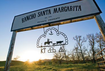 The cattle brands that hang from the Santa Margarita Ranch sign pay tribute to the three families that own the property. The ranch has been a productive agricultural site since its founding in 1774.