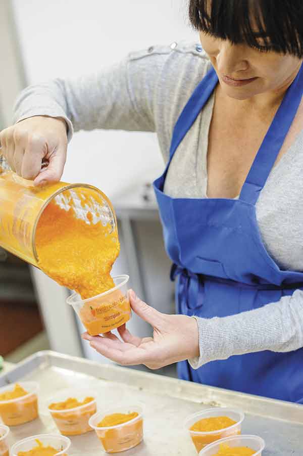 Flourish Foods founder Kim Burns turns seasonal, local produce into fresh purees for babies. Her company aims to fill the need of busy parents for convenient, nutritious baby and toddler foods that offer plenty of flavor. Photo: courtesy Flourish Foods