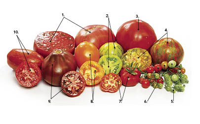 How many heirloom tomato varieties can you identify? Match the names below with the numbers in the photo.