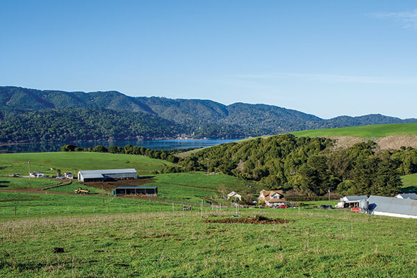Rolling hills and fog from nearby Tomales Bay support the pasture management and grazing strategies at Bivalve Dairy. Photo: © 2021 Paige Green