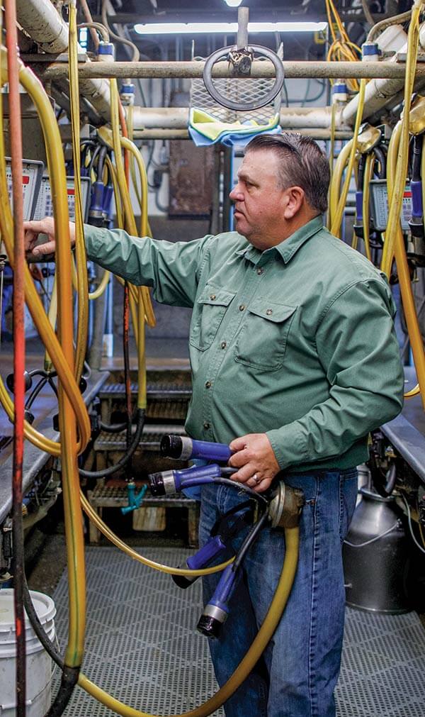 John Taylor applies his technology background throughout the dairy, including the milking barn, where milking begins at 2 a.m. daily. Photo: © 2021 Paige Green