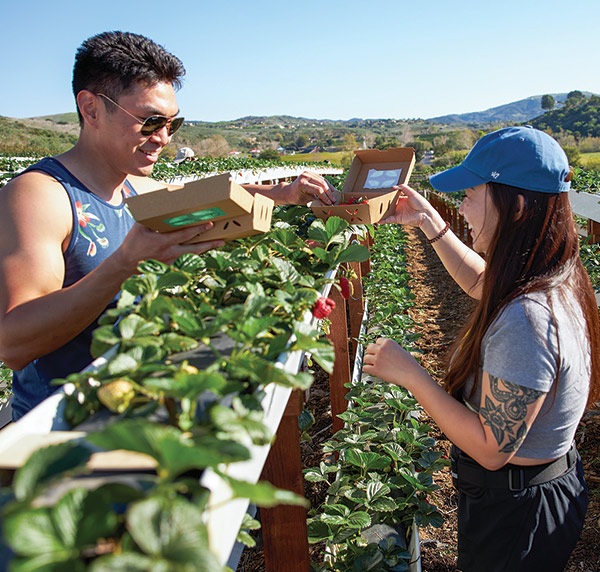 On their one-year anniversary together, Alex Lee of Orange took his girlfriend, Angela Park of Rowland Heights, on a wagon ride to pick strawberries, pet farm animals and roam the fields of a working farm.