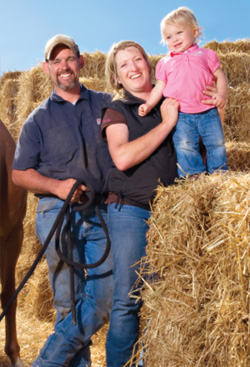 Dominic and Megan Judge with their daughter Autumn on their ranch in San Luis Obispo County. To help support the farm, the couple grows hay on a part of their property, as well as boards horses.