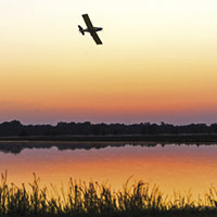April: Rice seeds are soaked and then loaded onto small planes. The planes fly at 100 miles per hour above the fields, evenly distributing seeds. The heavy seeds sink into the furrows and begin to grow.