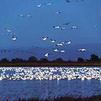 Snow geese are among the nearly 230 wildlife species that depend on Sacramento Valley rice fields for food and habitat.